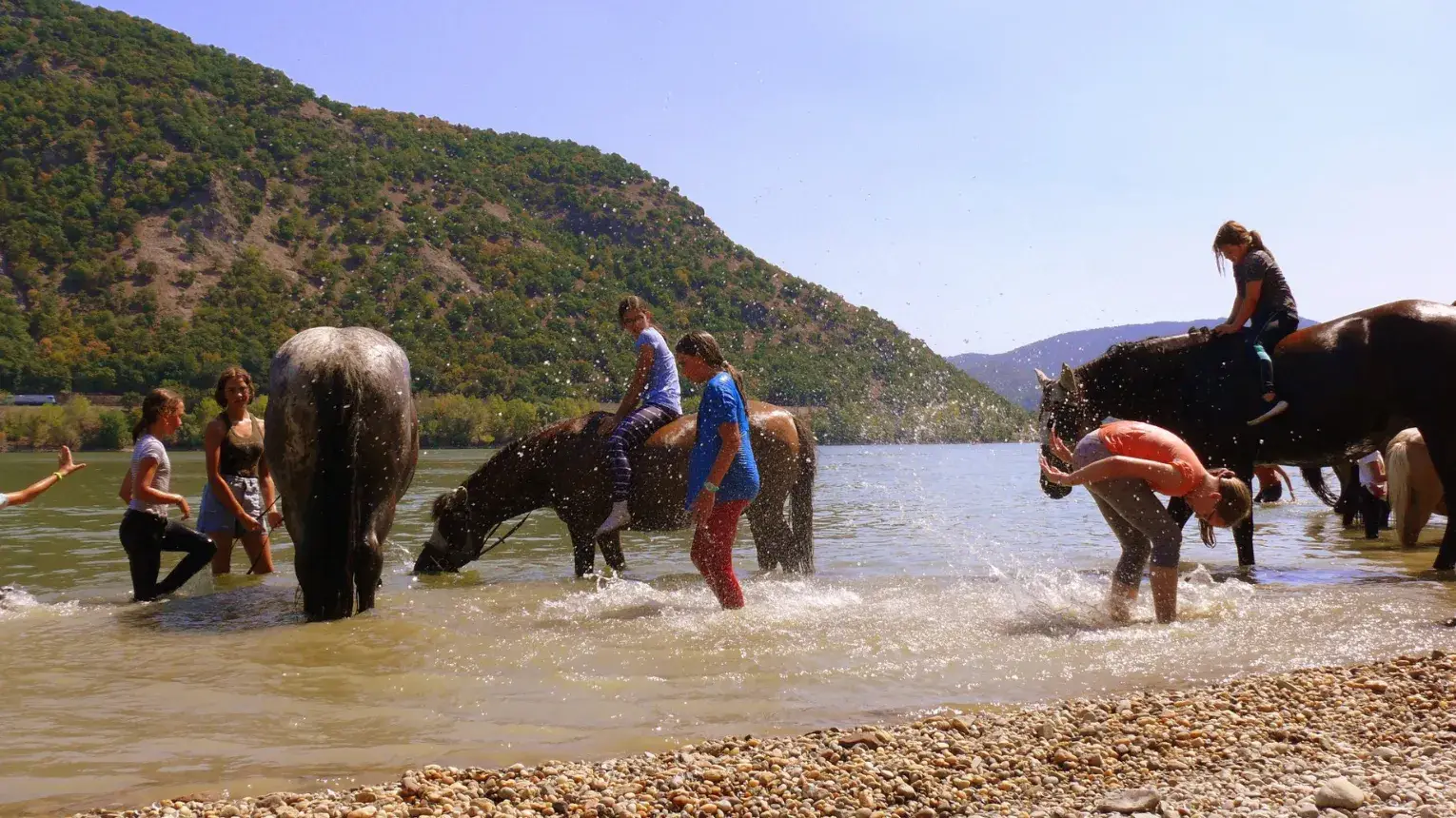 Ha a körülmények is engedik lemehetünk a Dunához, hogy még nagyobb élményt tudjunk nyújtani. Csodás fényképek készülhetnek így lóháton, háttérben a Dunával, és a csodás hegyekkel. Megörökítve a fantasztikus élményeket.
