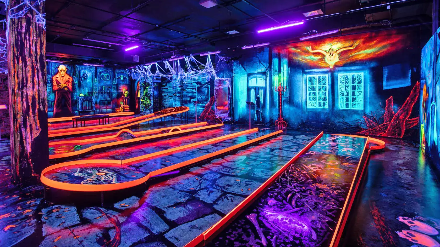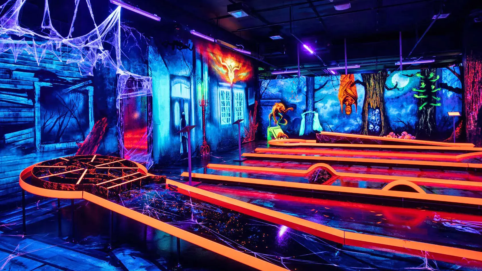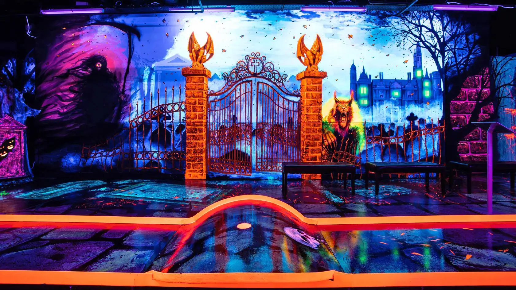 A mozgó elemek és a kézzel festett, foszforeszkáló falfestmények egy pillanat alatt rémfölde közepébe röpítenek majd. Felejthetetlen élmények várnak a szellemek, vérfarkasok és vámpírok birodalmában. Húzz bele, hogy túljuss a legborzongatóbb minigolf pályán, amin valaha játszottál!