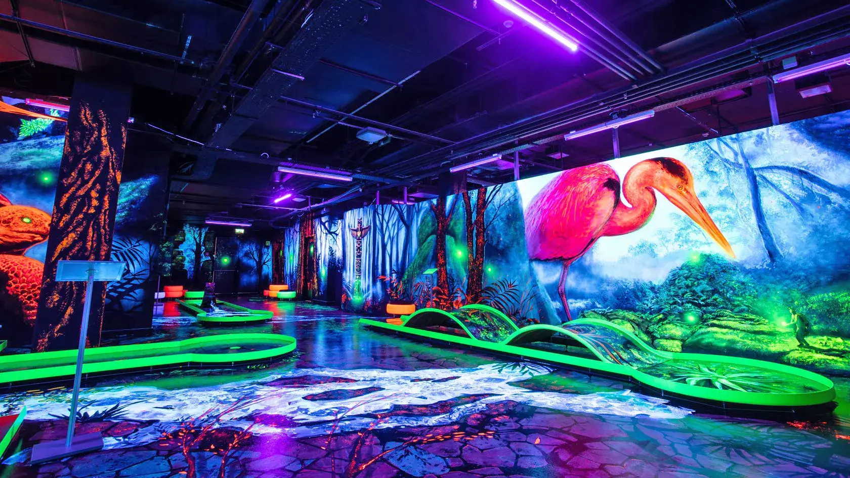 Sötétben világító káprázatos falfestmények és kreatív pályák ölelésében vehetsz részt Budapest legkülönlegesebb minigolf élményén. Mintha nem is a Földön játszanál! Lődd ki magad az űrbe, rettegd végig a horror szobát és tévedj el egy varázslatos erdőben! Három egyedülálló termen keresztül 18 pálya vár a felfedezőire.