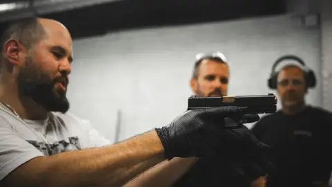 Több fajta fegyveren fogtok gyakorolni. Minden fegyvert szétszednek és összeraknak az oktatóval.