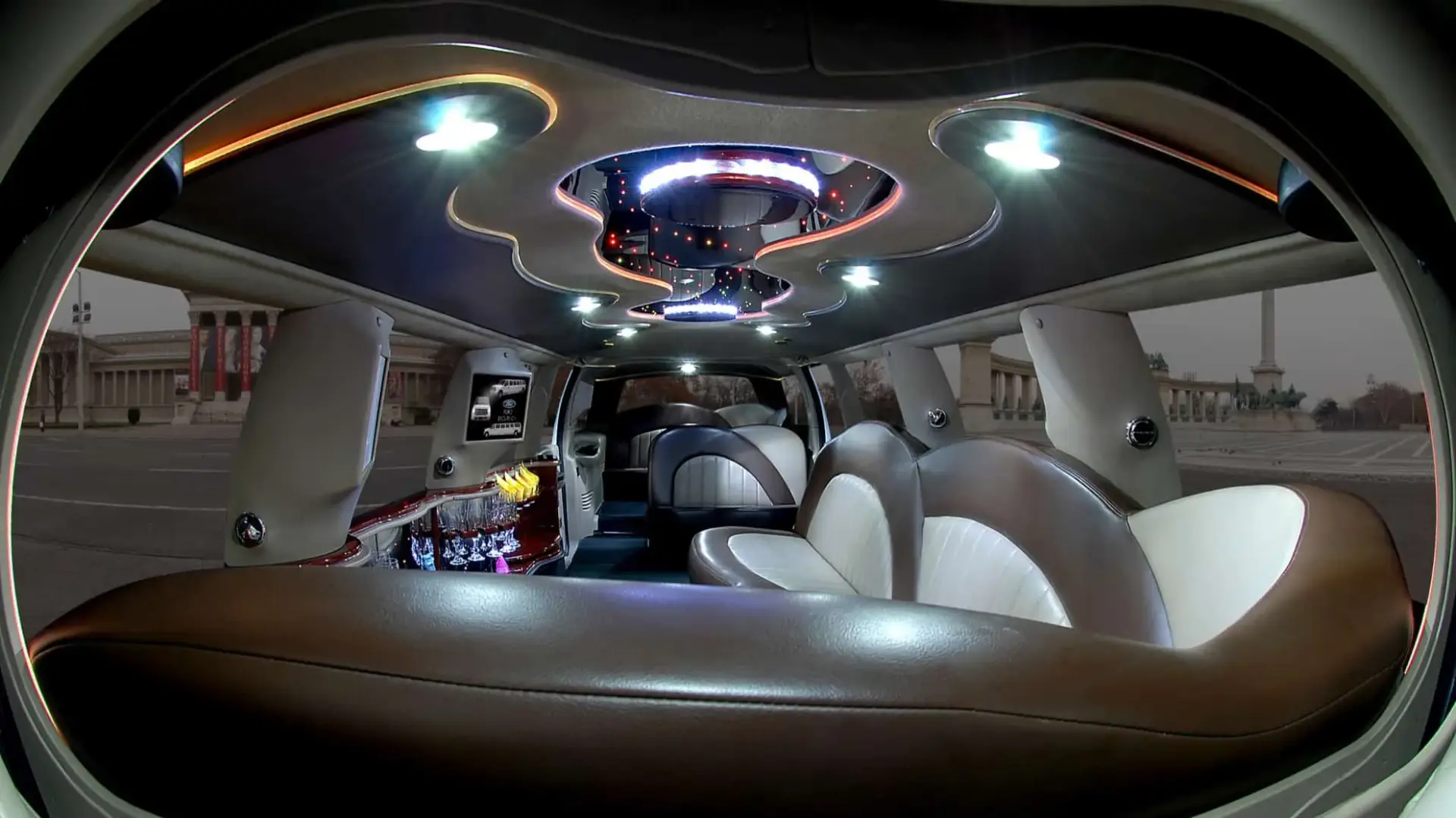 ● 3 LCD TV + DVD, bőr belső, tetőablak, hangulatfények, sötétített ablakok és egy fantasztikus mini bár