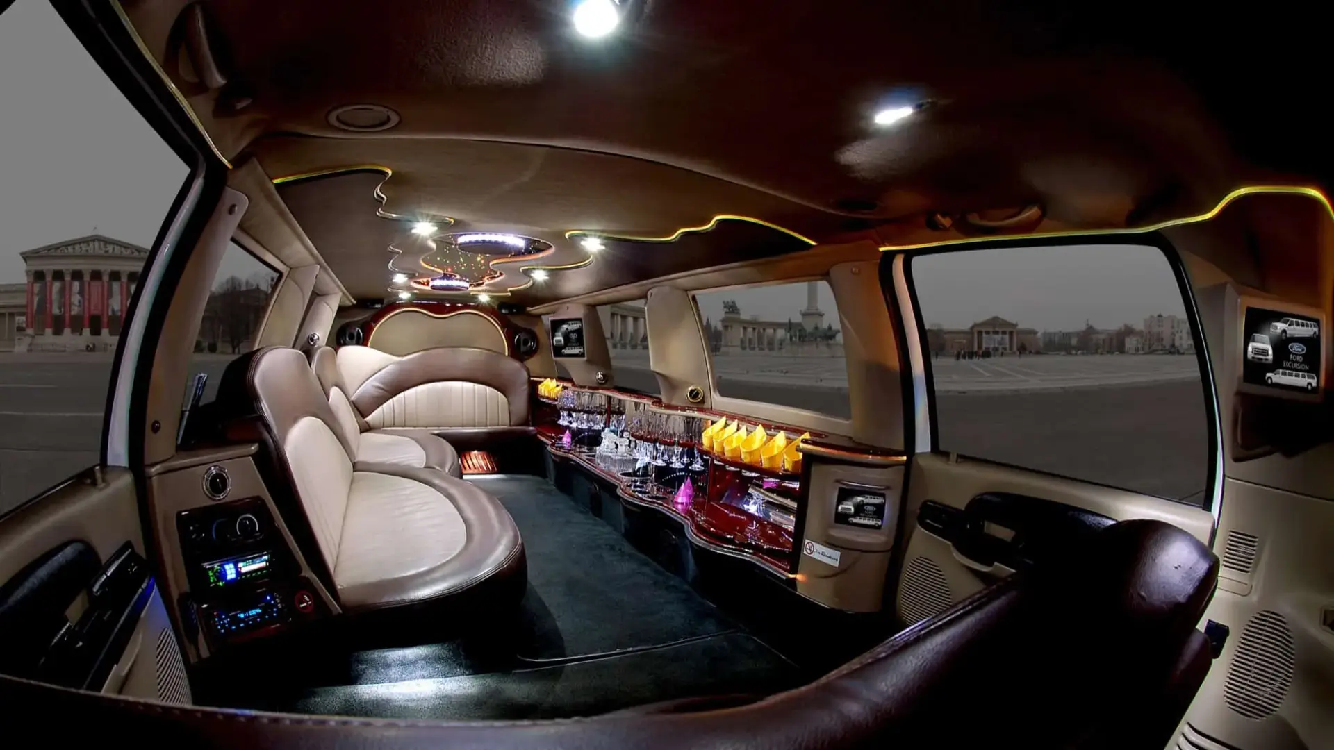 A 13 fős hófehér Ford limuzinban minden adott, hogy a társaság fantasztikusan érezze magát, tökéletes kényelem, királyi mulatság! A programra a hét minden napján van lehetőség 0-24 óráig.