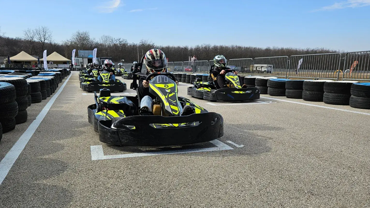 - Az élmény időtartama: A gokartozás 3x8 percet vesz igénybe.