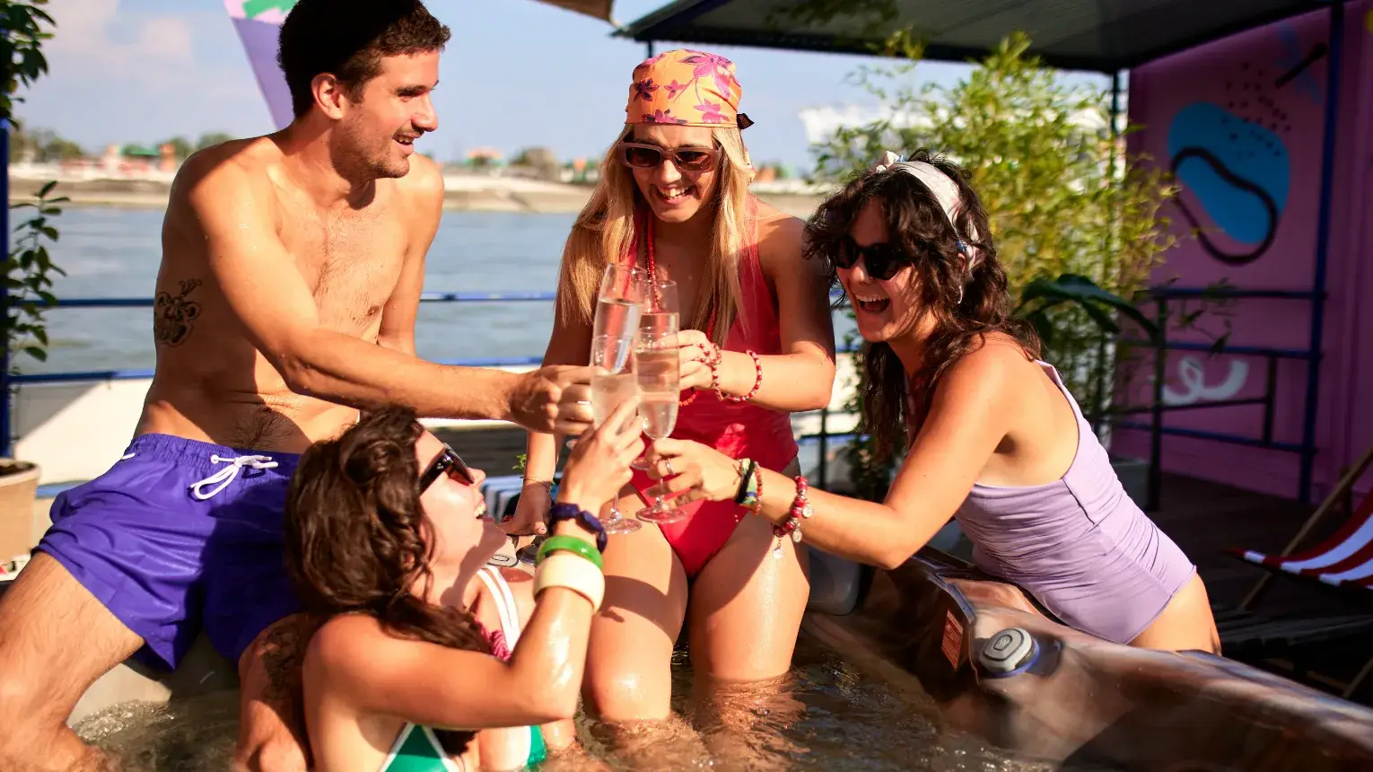 A Kopaszi-gát kikötőjében található Relax Teraszon 2 db, összesen 12 fő befogadására alkalmas pezsgőfürdő és 1 db szauna vár benneteket. A másfél órás city wellness élményre elég csak fürdőruhát hoznotok, a törölközőt és a relax élményt a helyszín biztosítja.
