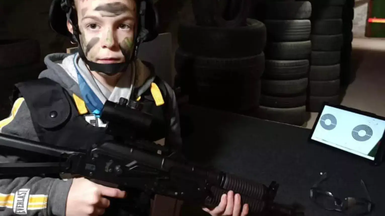 Képzeld el, ahogy kis ajándékozottad belép a fegyverszobába: 50+ különféle airsoft fegyver sorakozik a falakon, pisztolyok, gépfegyverek, mesterlövész puskák, gumilövedékes shotgunnal együtt, minden darab RedDot irányzékkal és valósághű súllyal, mérettel. A túlsó falon eredeti taktikai ruházat – mellények, sisakok, rádiók, álcaruhák – minden adott, hogy az élmény teljes legyen!