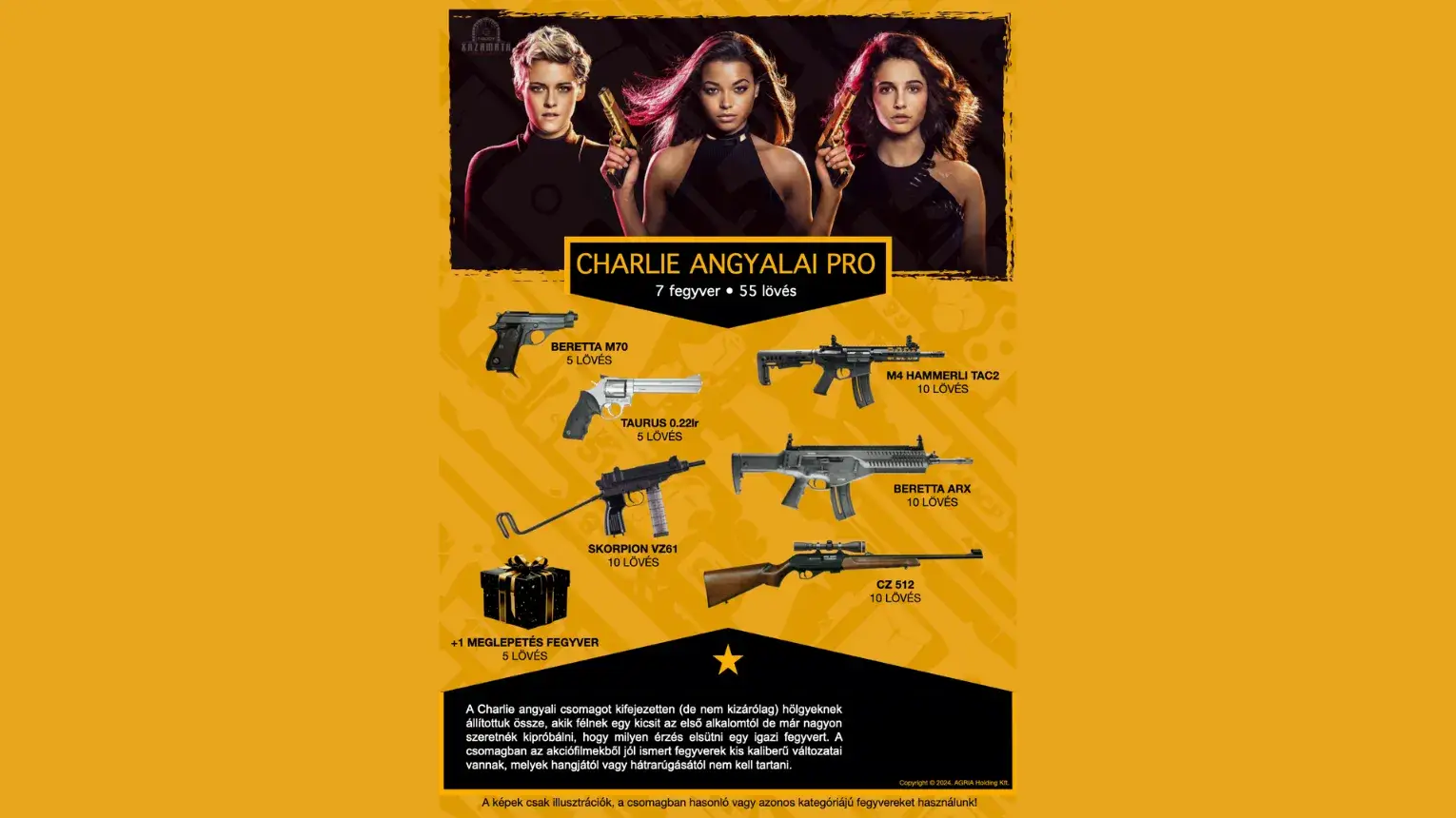 A felsorolt fegyverek rendelkezésre állása változhat, de minden esetben azonos kategóriájú és kaliberű fegyvert biztosítunk helyettük, melyek ugyanazt az élményt tudják nyújtani!