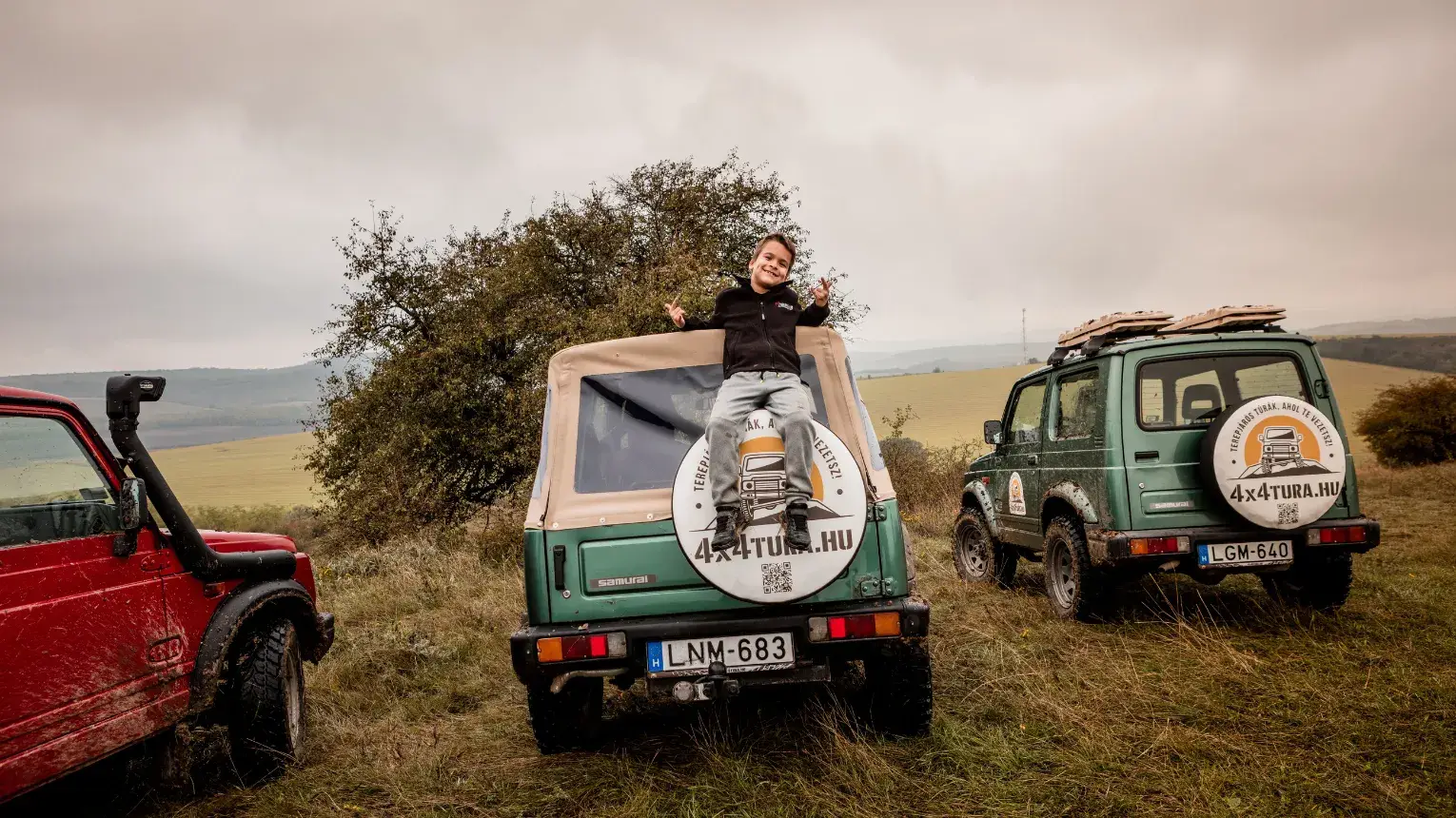 - A flottánk 6 db spirálrugós Japán Samurai terepjáróból áll, amelyek kiemelkedő terepjáró képességeik és kényelmes rugózásuk miatt rendkívül népszerűek.