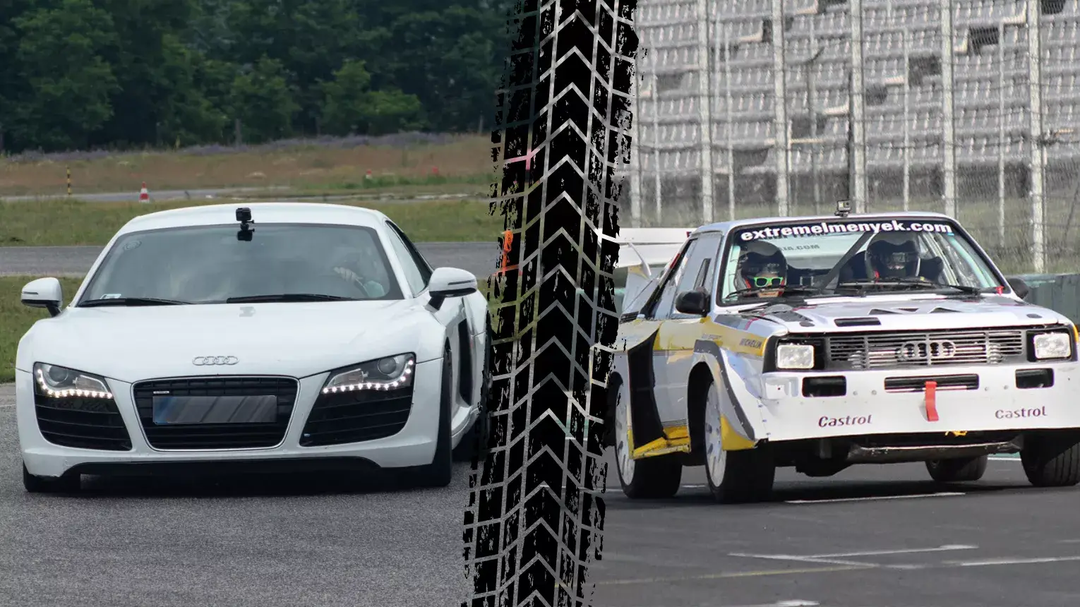 Adja ajándékba audis őrült száguldást! Egy legendás Audi S1 Rally autót és a mai Audi R8 csúcstechnikát megtapasztalni egy napon autó őrülteknek szinte kötelező . A nyers erő és a kifinomultság kontrasztja többszörösére emeli a külön-külön mindkét autóban megtapasztalható élményt. Egy ilyen őrületes száguldás nem csak felejthetetlen élmény, hanem valóra vált álom az ajándékozottnak.