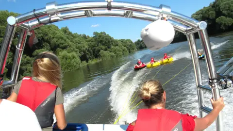 A vontatáshoz használt vízijármű egy 19 láb hosszú 4,3 literes V6-os 190 lóerős motorral meghajtott sporthajó, mely nyomatékos motorjának köszönhetően garantálja mind a 4 résztvevő számára a sebesség élményén kívül a megfelelő hanghatást is.
