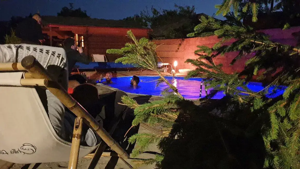 - szállás kétfős faházakban, közös nappalival és fürdővel,
