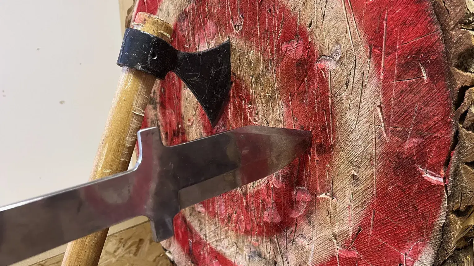 - 45 perc vagy 1 óra 45 perc intenzív kés- és baltadobálás