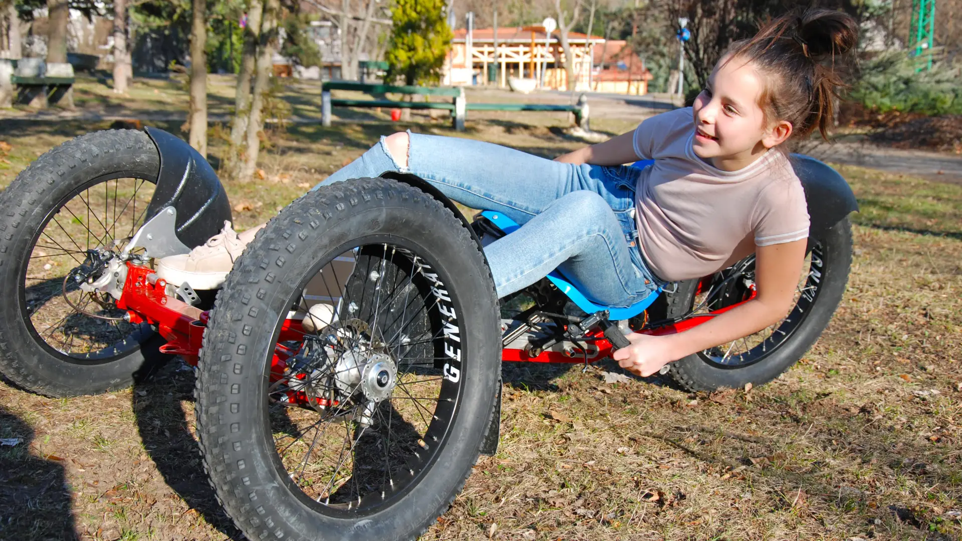 Az E-Coaster több mint egy tricikli, hiszen úgy van kialakítva, hogy a nyeregben ülő irányításának engedelmeskedve a gravitációs pontot a kör belsejébe nyomja, ezért füves terepen szinte lebeg, erősebb talajon pedig tapad.