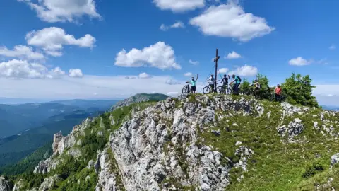 Békás szoros-Nagyhagymás Nemzeti Park Túra (kb. 5-6 óra, 20 km tekerés, 870 m szintkülönbség): sűrű erdő között kanyargózó, meredek kavicsos utakon és hegyi legelőket átszelő ösvényeken haladva hódíthatják meg a Hagymás-hegység 1400-1794 m-es sziklatornyait.