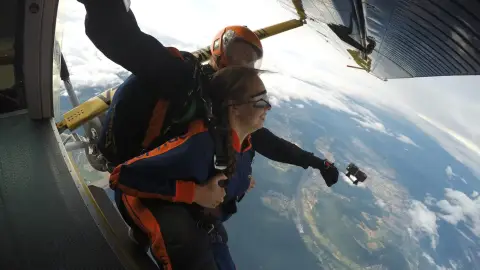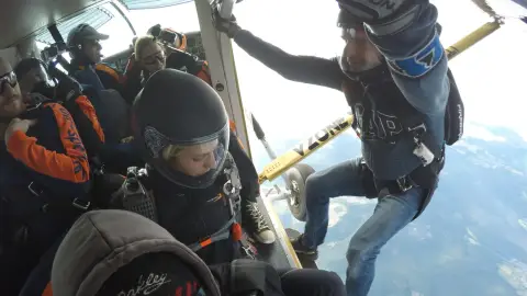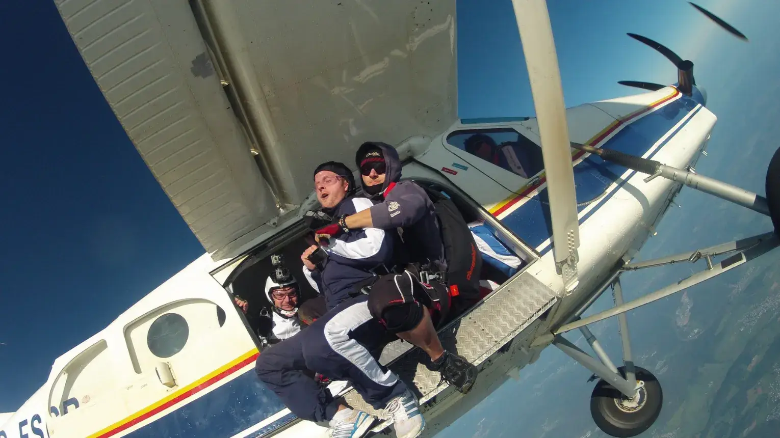 - Aztán jön a nagy pillanat: kinyílik a gép ajtaja, dobban a szív, és már bent is van a szabadesésben!