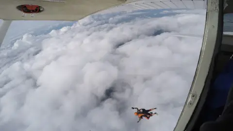 - Ezután egy Cessna-182-es kisrepülővel emelkedik fel 3000 méteres magasságba – ez már önmagában is lenyűgöző.
