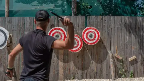 Lepd meg szeretteidet egy igazán különleges élménnyel, ami garantáltan kihozza belőlük a rejtett harcost! A késdobálás nemcsak szórakoztató, hanem adrenalindús tevékenység is, amely próbára teszi a célzást és a koncentrációt. Profi instruktorok segítségével sajátíthatják el a dobás technikáját, majd kiélhetik a bennük rejlő kalandvágyat egy izgalmas, céltáblák elleni küzdelemben. Tökéletes ajándék mindenkinek, aki imádja az egyedi, kihívásokkal teli programokat!