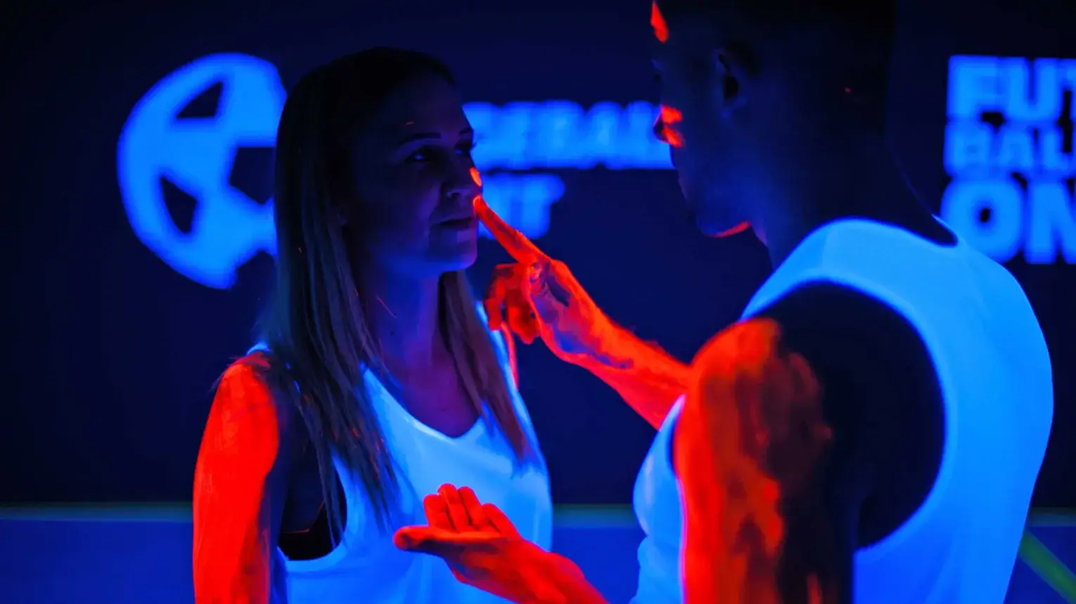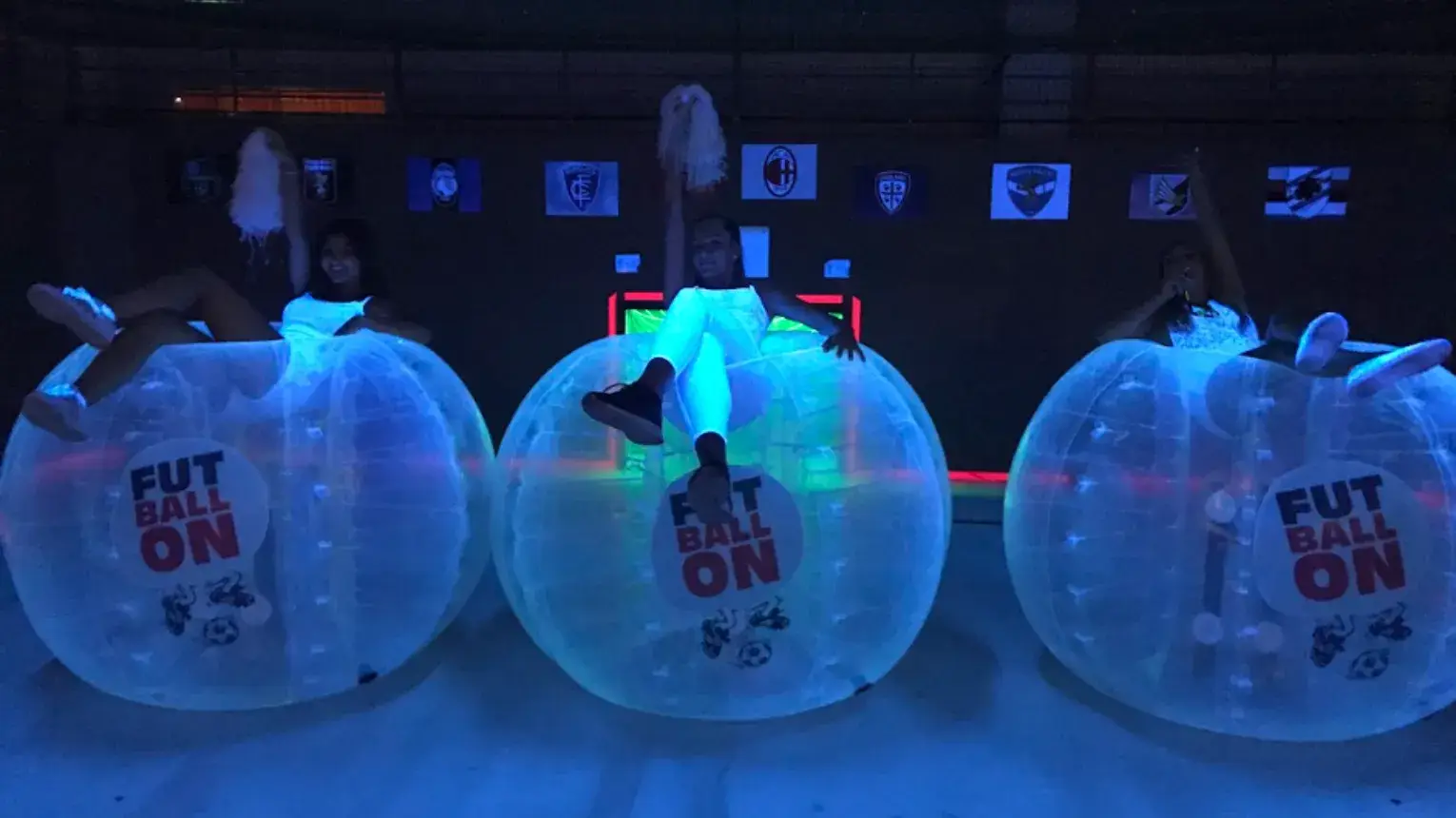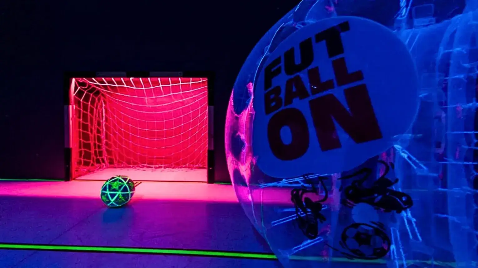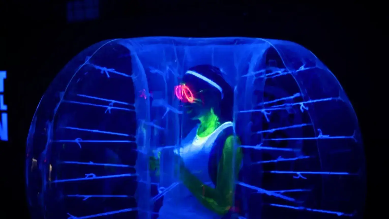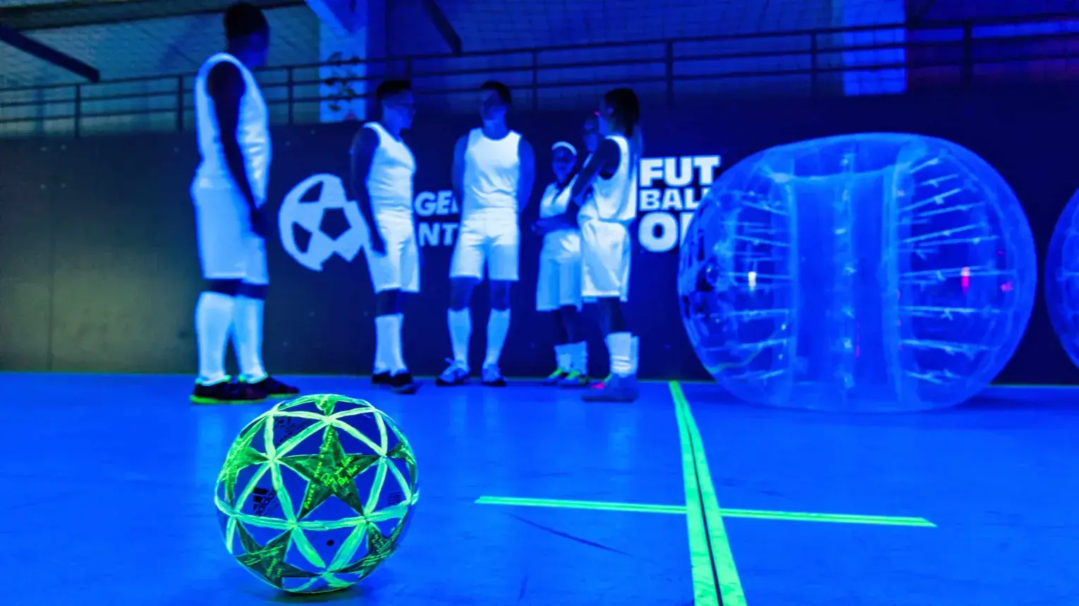 Az ajándékozott egy különleges, UV-fényekkel megvilágított ketrecfoci-pályára lép be, ahol a teljes sötétségből csak a lényeges elemek világítanak: a labda, a kapuk és esetlegesen a csapattársak UV-aktív testfestése. A meccs kezdetekor mindenki buborékot ölt, és indulhat az ütközésekben, gurulásokban és látványos esésekben bővelkedő meccs! A cél természetesen a gólszerzés – de itt az igazi élmény az, ahogy a résztvevők egy gravitációt meghazudtoló, fluoreszkáló sci-fi kaland részeseivé válnak.