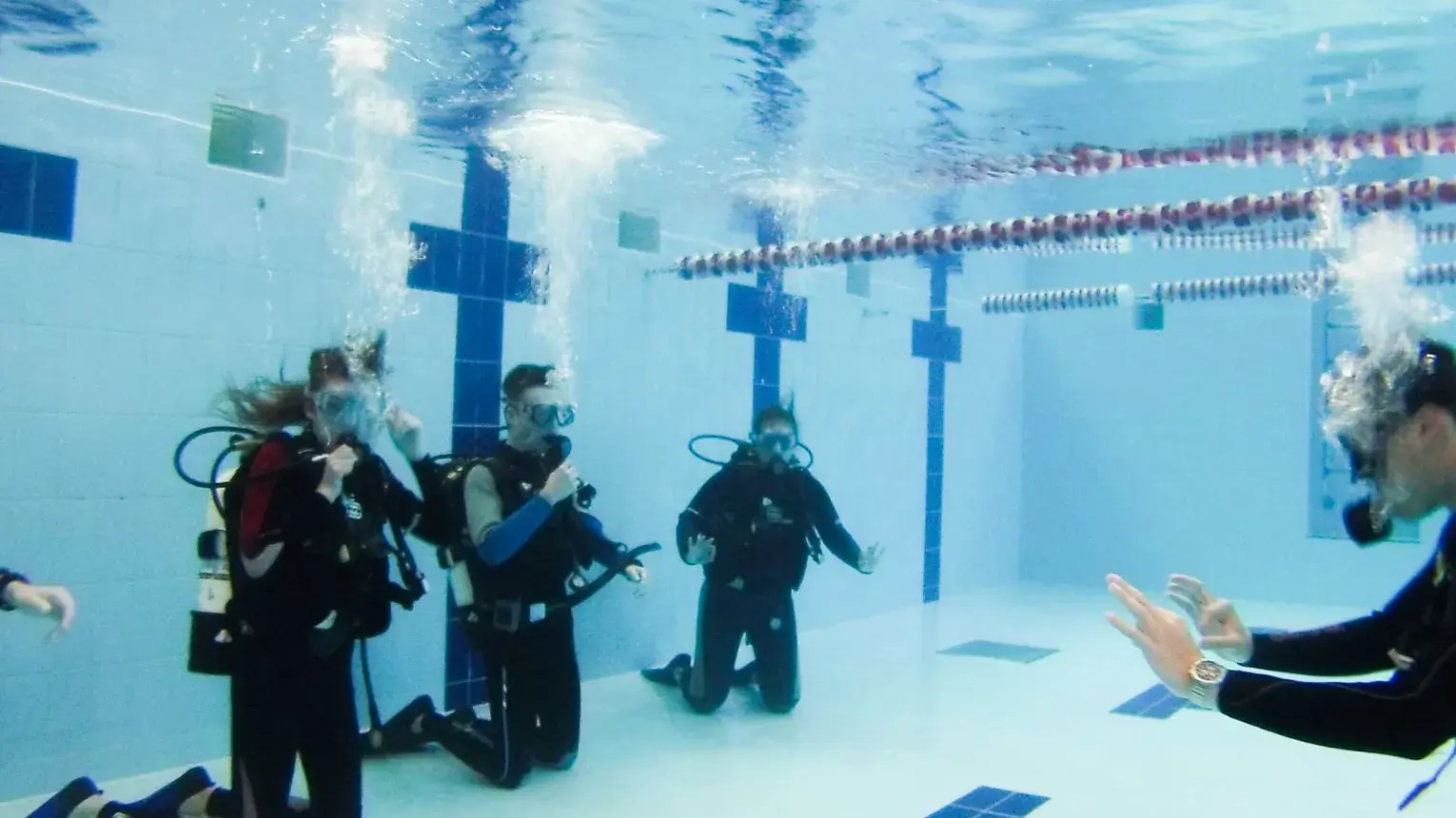 Védett-víz: összesen 6 órát töltesz majd el vízben. Először a kétméteres medencében csináljuk meg azokat a feladatokat melyeknek az elméletét már megtanultad úgy, mint víz alatti légzés, maszkürítés, reduktor keresés stb. Ezek után irány a 4 méteres medence, ahol a feladataid ugyanazok lesznek, de már mélyebb vízben.