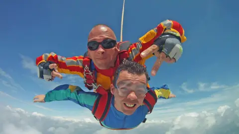 Egy földi eligazítást követen felszállunk. Az ugrási magasságot elérve (4300 m-en) kivetődünk a repülőből, és egy 40-45 mp-es szabadesés következik. Ez a legadrenalindúsabb rész, 100% súlytalanság, szabadság érzés!