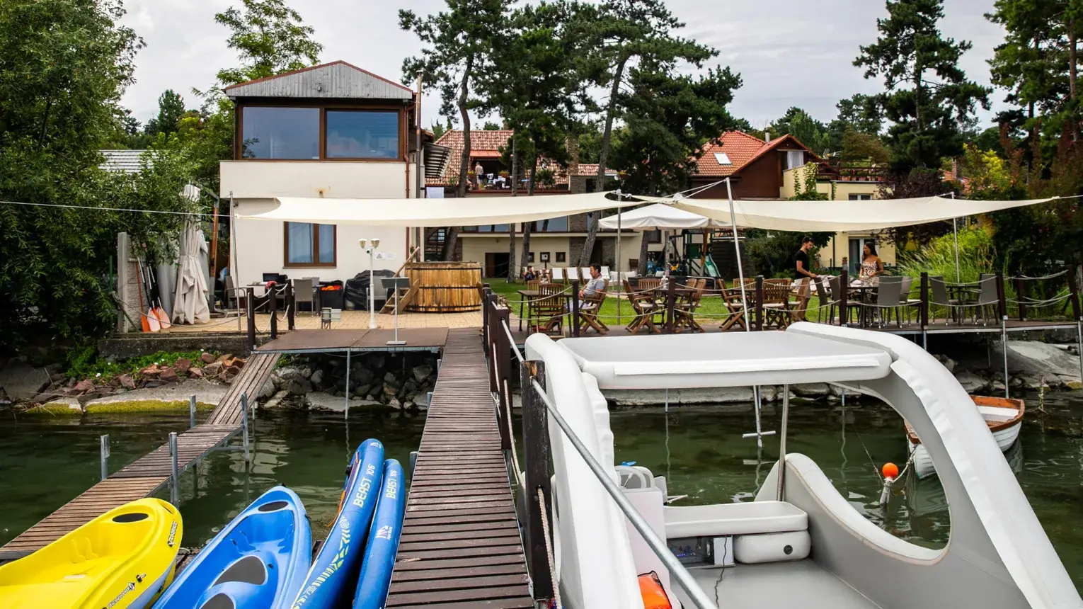 Egy igazi, elektromos katamarán lehet a tiéd és barátaidé. Hajós jogosítvány nélkül vezethető, hat/nyolc fővel is használható és a napozó tetőn kettő/négy fő tud egy időben napozni! Elektromos meghajtása akár 40 km megtételére is lehetőséget ad egyetlen felöltéssel, így a Balatont bátran felfedezhető családdal, barátatokkal. A tetején elhelyezett napelem pedig tovább növeli a ható távot és nem utolsó sorban megújuló energiából, környezet tudatos módon értékelhető a Balaton szépsége! Mindenki számára élvezhetővé válik a gyönyörű panoráma nem csupán főszezonban, a tikkasztó 35 fokos hőségben, hanem akár már a tavaszi, kora őszi napsütésben is!