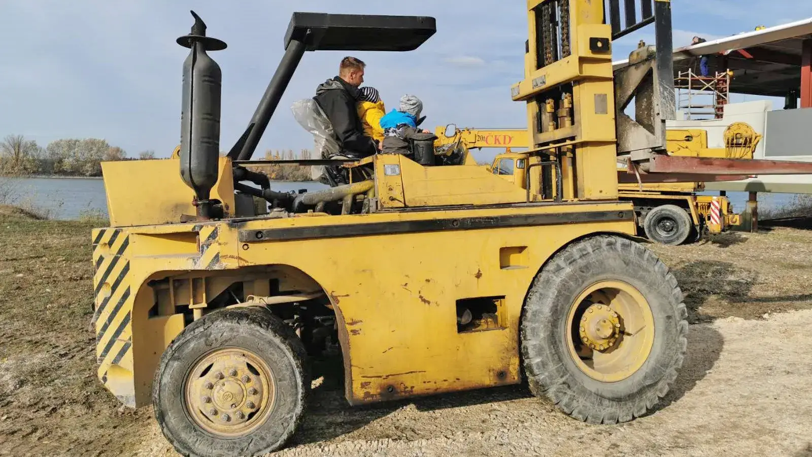 Takraf típusú, 11 tonnát bíró targoncával autók mozgatása