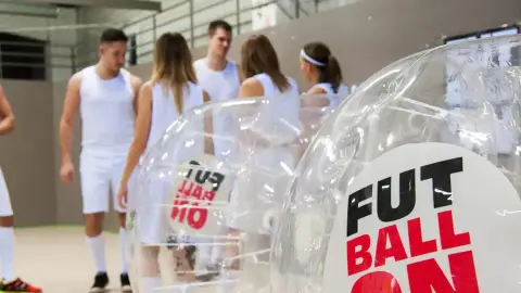 A buborékfoci alapjaiban a futballra épül, de jóval szórakoztatóbb formában. A résztvevők egy átlátszó, óriási buborékot öltenek magukra, amely térdtől fejbúbig védelmet nyújt, így a meccs során szabadon ütközhetnek, borulhatnak és pattoghatnak anélkül, hogy bármi bajuk esne. A cél ugyanaz: bejuttatni a labdát az ellenfél kapujába – de a közben kialakuló kaotikus jelenetek és mókás ütközések miatt garantált a folyamatos nevetés.
