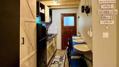 - felszerelt konyha étkezővel (minisütő, főzőlap, hűtő mélyhűtővel, mikro, kenyérpirító, kávéfőző, vízforraló, teljes edényzet, kávé és tea bekészítés)