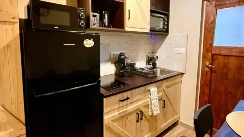 Faház apartmant elsősorban pároknak és fiataloknak ajánljuk, akik a fenyők között bekuckózva élveznék a hegyekre panorámás háló és fürdőszoba nyújtotta stresszmentes kiszakadást a hétköznapok rohanásából. Ebben a részben egy emeleti háló, egy nappali-konyha-étkező, valamint egy 2 személyes fényterápiás jakuzzis káddal ellátott, hegyekre panorámás fürdőszoba található.