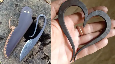 A késeim rusztikusak, a régi időket idézik... A pengék egytől egyig kovácsoltak, néha még a kalapács ütésnyoma is látszik rajtuk. A nagyobb késeknél kb. 1 mm vékonyra kovácsolom le az élüket, de a kisebbeknél akár pár tized mm-esre. Ez utóbbi esetben már elég egy-két kővel megfenni őket, és így akár edzés és köszörülés nélkül is használhatóvá válik a borotvaéles penge. Ilyenkor ugyanis a pengékben, ill. az élekben az anyag nagymértékben tömörödik, zömül.