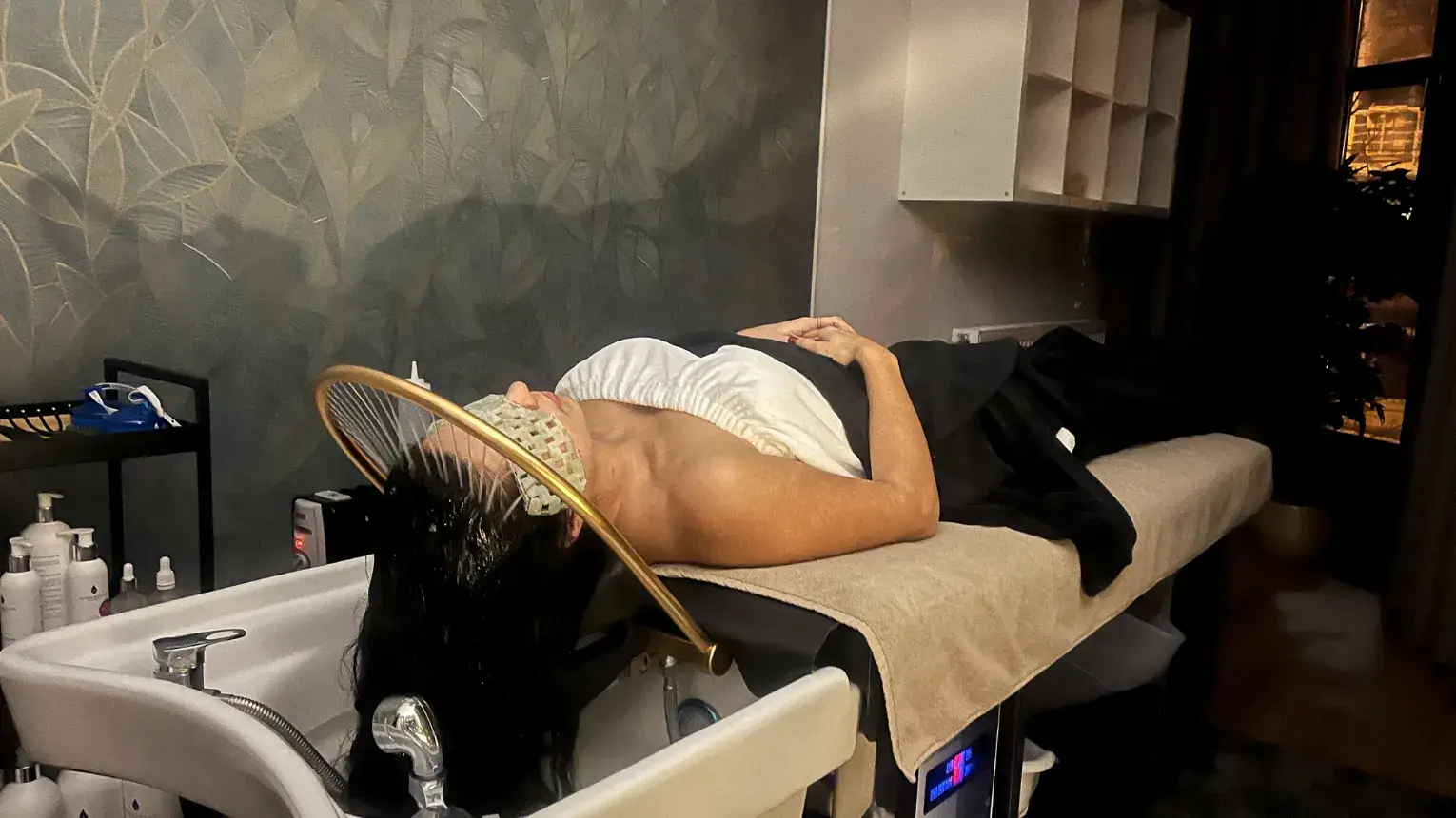 - Mélytisztító hajmosás: Aromás illatok és meleg vizes hajöblítés, ami már önmagában is rendkívül pihentető.