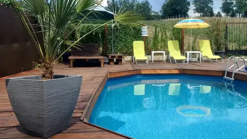 - A medence (jún.-szept.) közös használatú, mindhárom apartman számára.