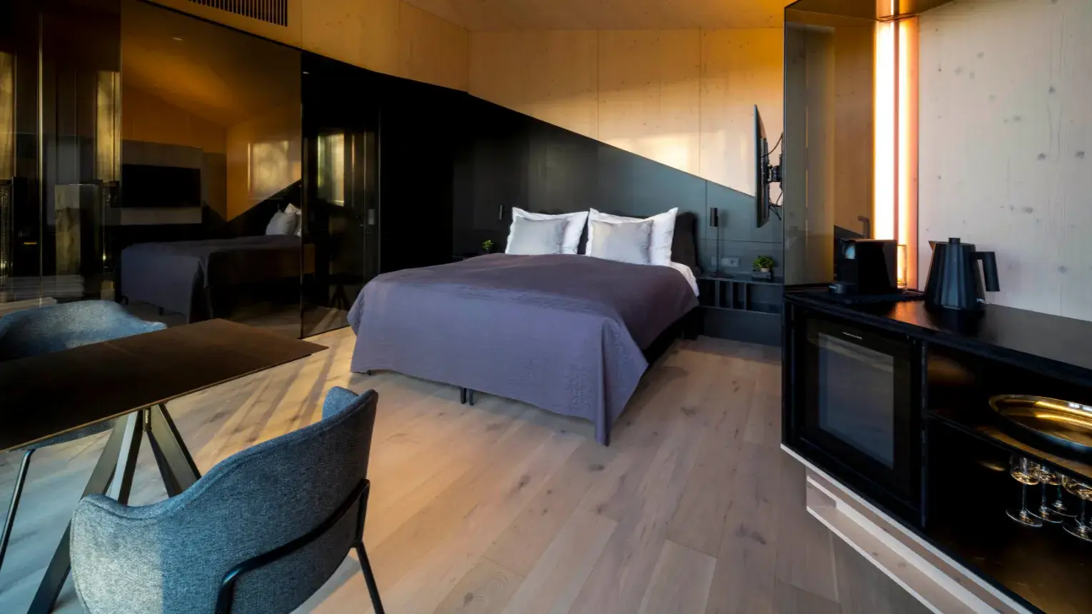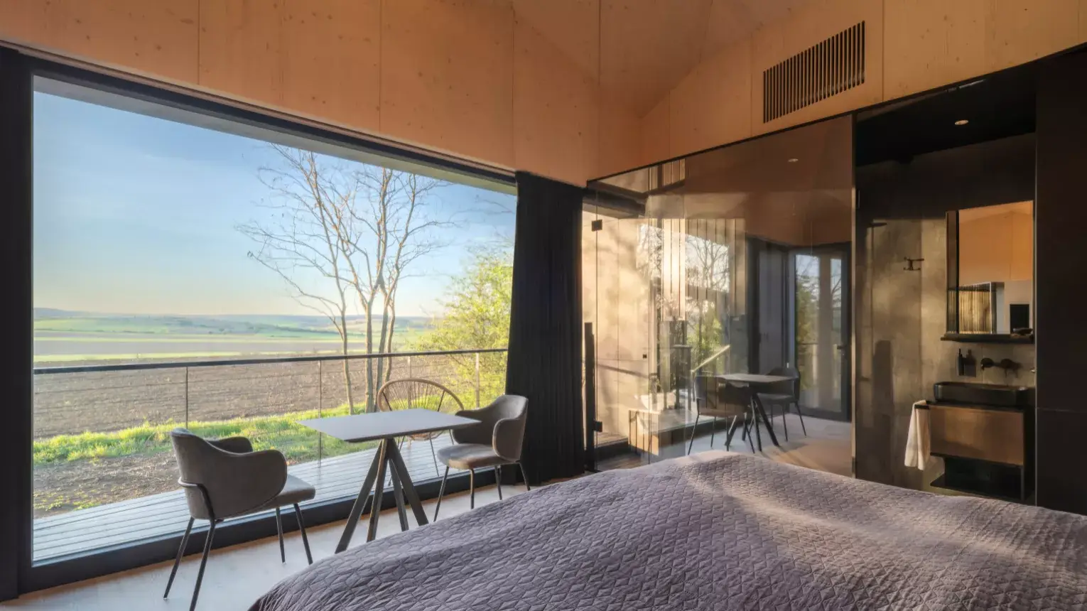 Az élményzuhannyal ellátott privát infraszauna gyönyörű panorámájával várja az itt megszállókat. A wellness pavilon ölelésében a napozóágyon vagy a forró jacuzziban garantáltak az intim pillanatok.