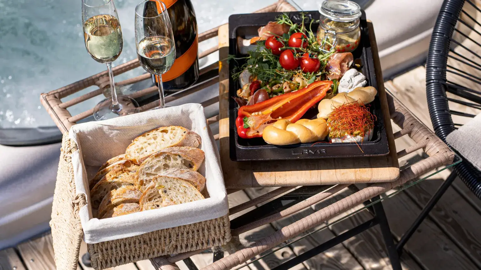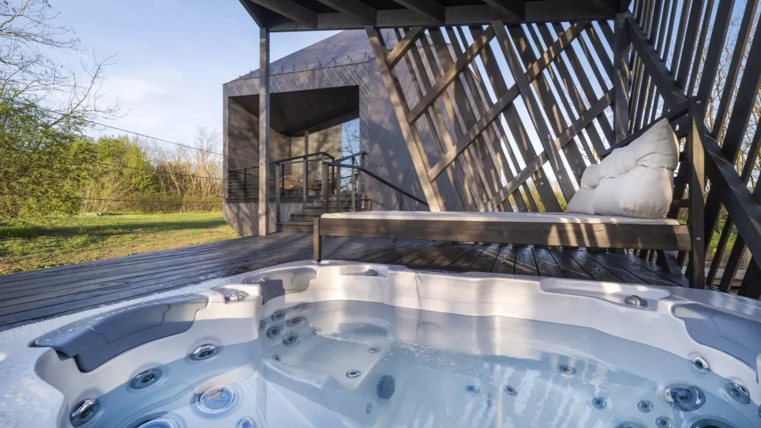 - Kétszemélyes jakuzzi és pihenőágy a wellness pavilonon