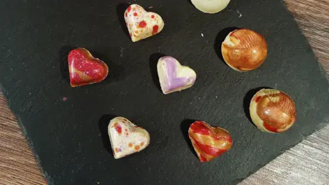 - Színes öntött bonbonok készülnek: Festett, egyedi darabok, amelyek szinte műalkotások.