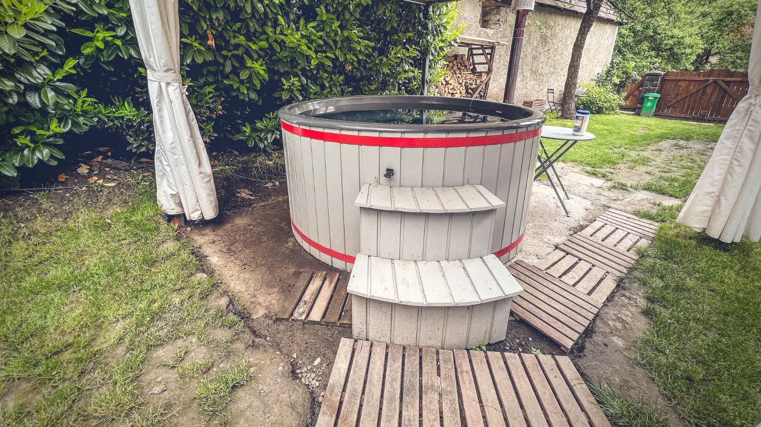 - Külső hőmérséklet függvényében, és amennyiben a használatok között befedik a dézsát, úgy egy felfűtéssel, akár 24 órán át is élvezhető a kellemes meleg víz.