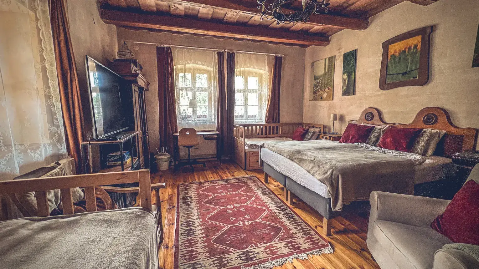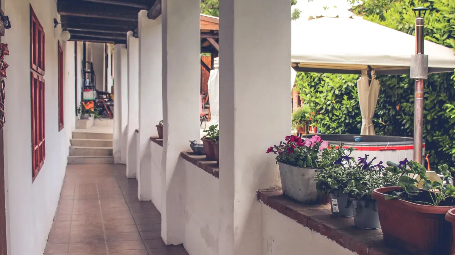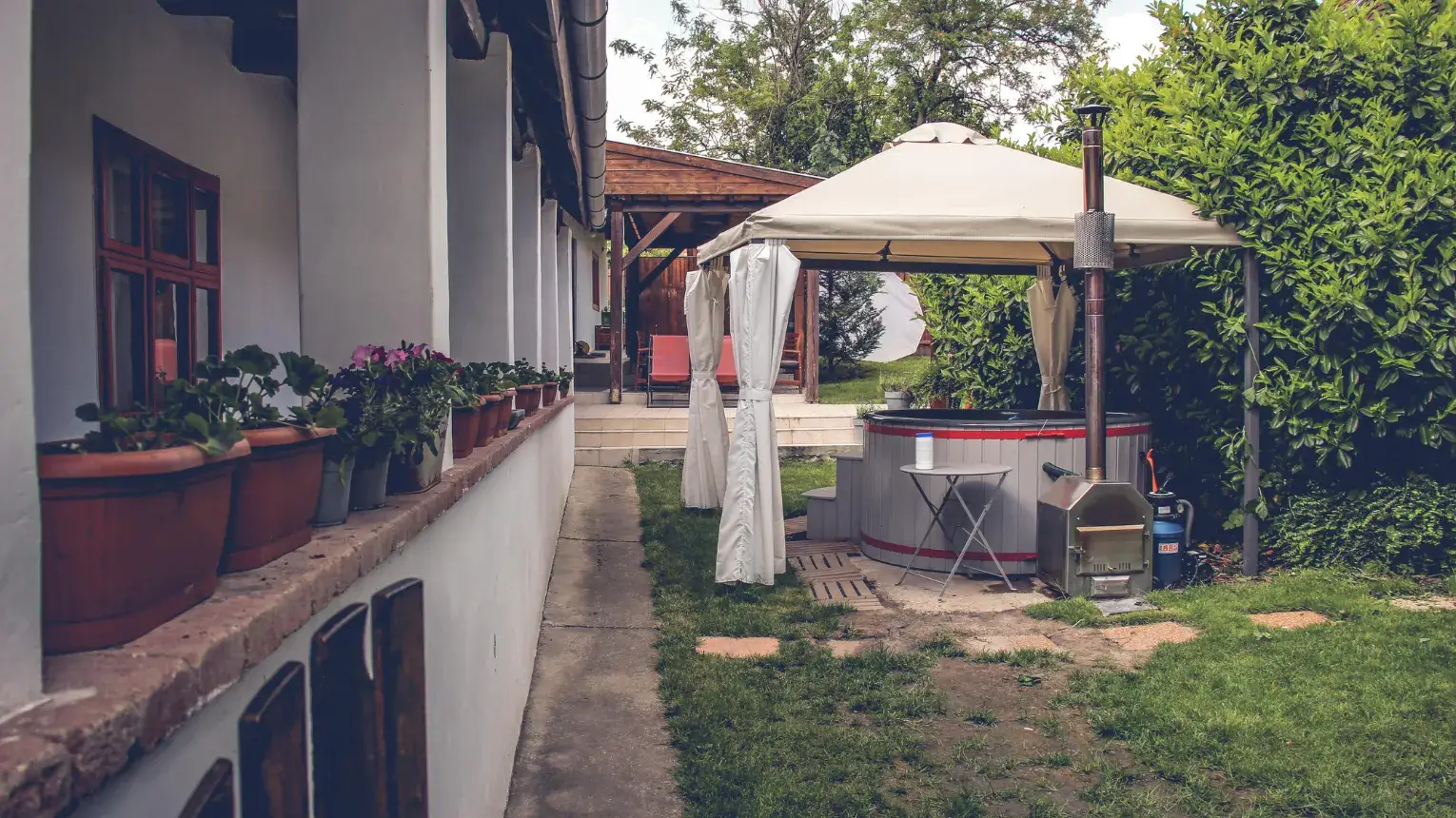 A Muskátli Ház egy telken található a Kis és Hétszemélyes Házzal. Igény esetén az udvar egybenyitható bármelyikkel!