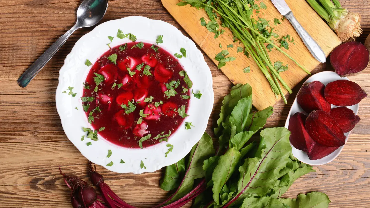 elkészíti az eredeti borscs levest, hozzá fokhagymás céklasalátát vagy orosz húspogácsát
