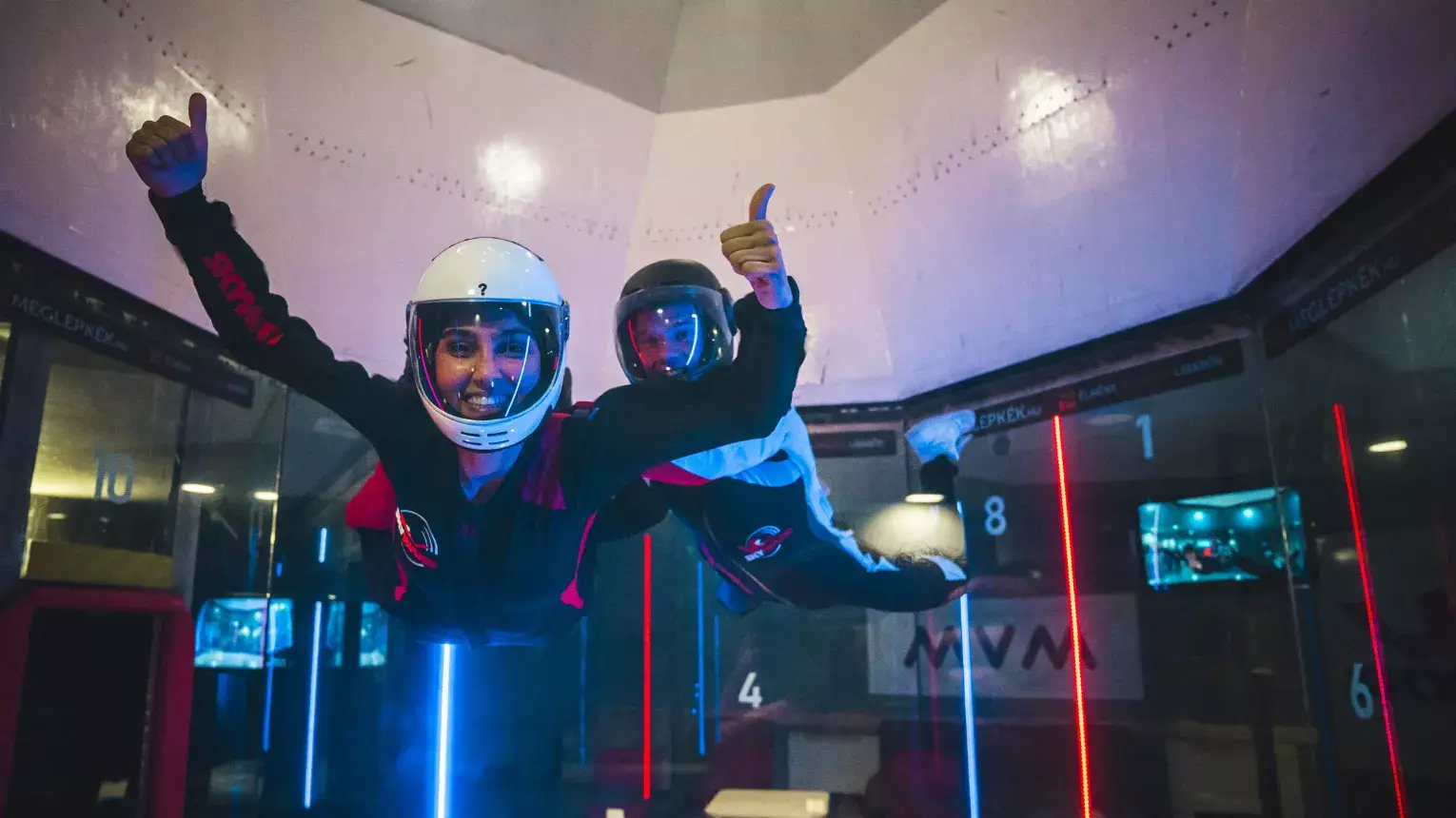 A zuhanás tökéletesen biztonságos. Beltéren, a szélcsatornában fogsz lebegni, ahol ejtőernyős veteránok lesznek veled. Ők mutatják majd meg, hogy hogyan lebegj és mire figyelj – végig segíteni fognak, hogy hozd ki egy ugrásból a maximumot, és ezt meg is mutatják neked.