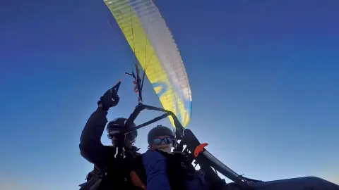 A siklóernyős tandemrepülés (vagyis kétszemélyes repülés) különleges élményt nyújt az utasnak. Ez a repülés legközvetlenebb módja, és mivel az utas elöl helyezkedik el (a pilóta pedig mögötte), az utas kilátása teljesen zavartalan. Az arcán érzi a levegő áramlását, és a levegőben lógó lábai alatt látja a tájat, mintha csak egy fotelben ülne, több száz méter magasan.