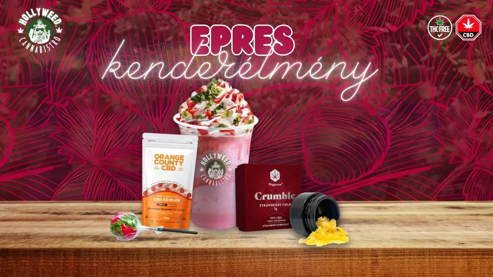 Különleges élményt kínálunk, magas minőségű alapanyagok felhasználásával a Hollyweed Cannabistroban, etikus forrásból teljesen THC mentesen. Most csomagban kínáljuk a kender élményt, egy kis eperrel megspékelve. Nézzük mit tartalmaz ez az összeállítás: