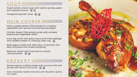 A gyertyafényes hajós vacsora során professzionális és barátságos pincérek szolgálják fel a 4 fogasos menü ételeit.