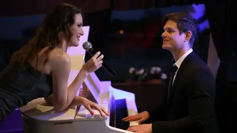 Hajós vacsoraprogramunkat különleges zongoraműsorunk teszi még inkább magával ragadóvá. Két tehetséges zongorista és egy fantasztikus énekesnő gondoskodik az este hangulatáról. A műsor során felcsendülnek a legtöbbek által jól ismert és közkedvelt romantikus és szórakoztató, könnyed dallamok, adva ez által egy meghitt, komfortos hangulatot az olykor háttérzeneként, olykor show-ként megjelenő zenének.