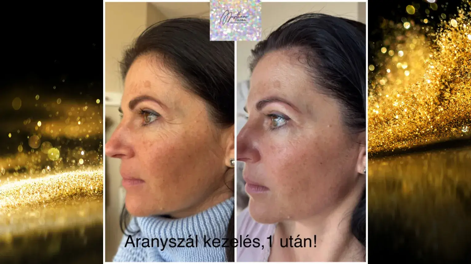 Anti-Aging kezelés bőrbe olvadó arany kollagén-peptidszálakkal arc területen