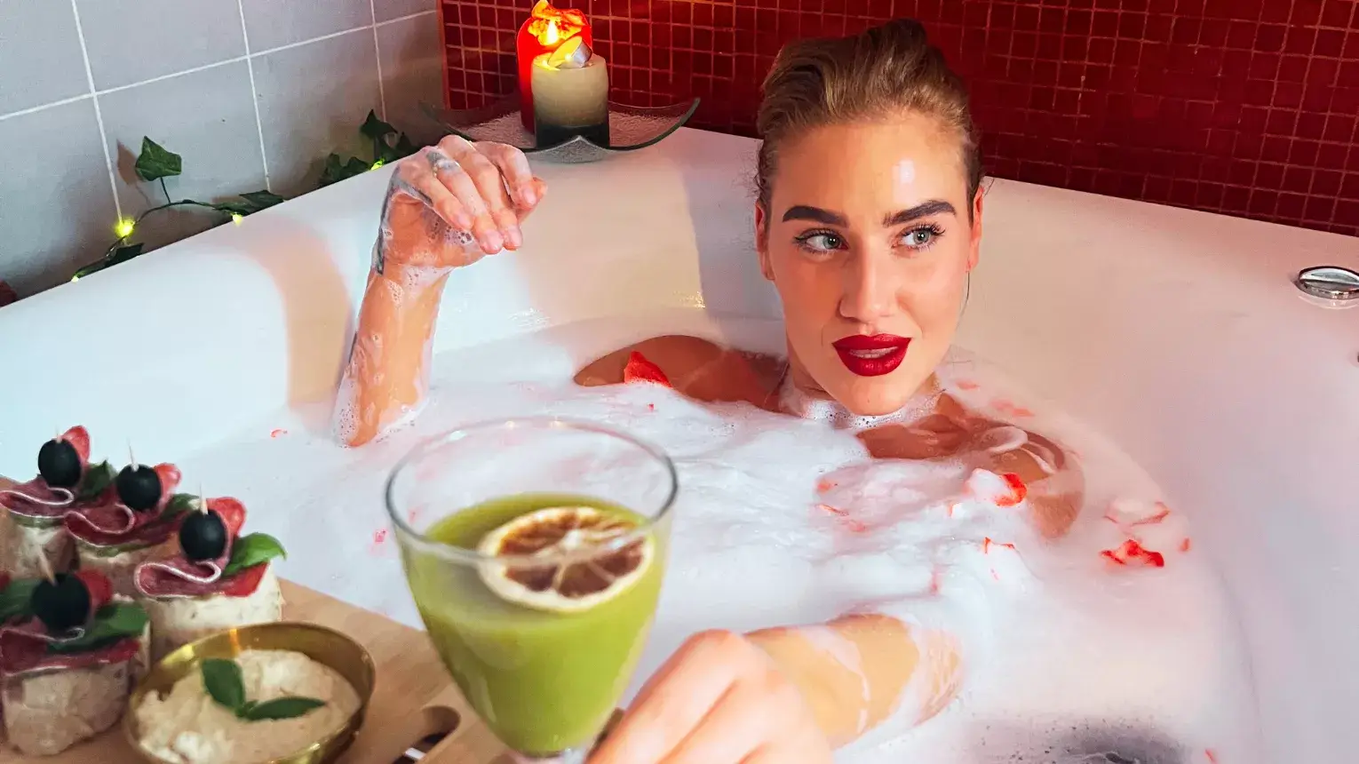 - 60 perc pihenőszoba használat - tejszínes levendula fürdő, citromkarikákkal és rózsaszírmokkal diszítve