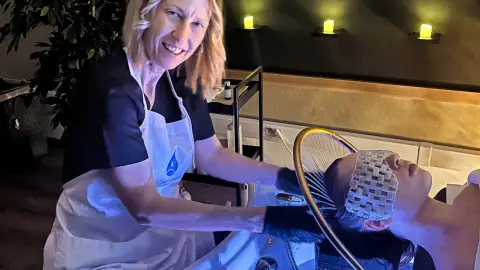 - Gőzölés és körvízsugaras terápia: A fejbőr és a haj mélyreható megtisztításáért, amely felpezsdíti a keringést.