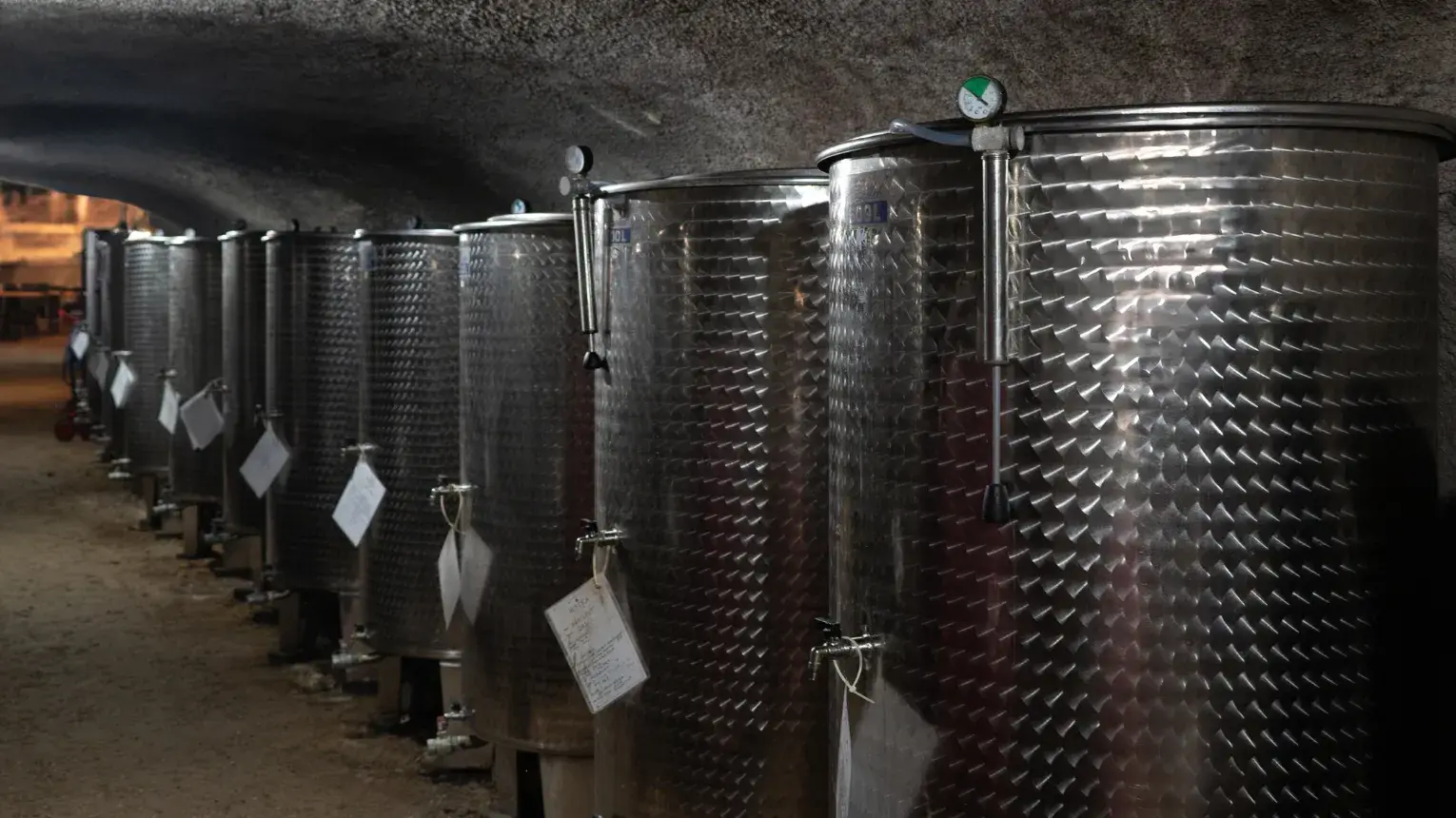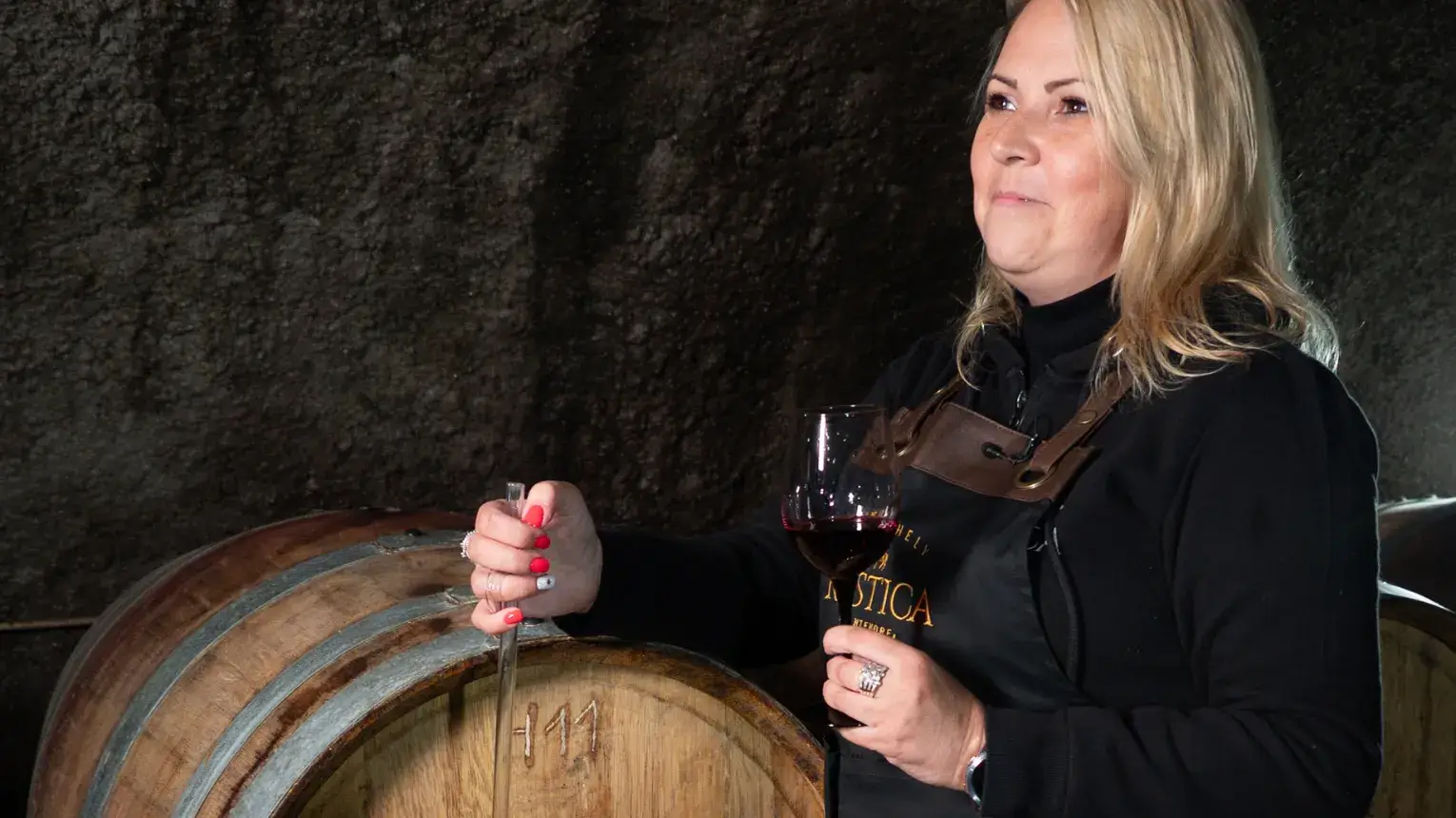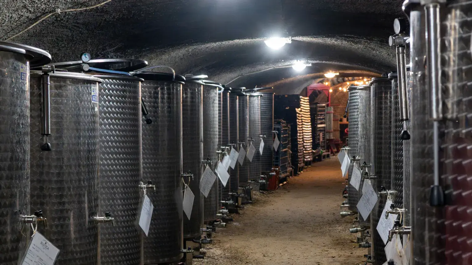 Leülünk egy asztal mellé, és az 5 tételes borkóstoló során beszélgetünk a borokról, majd körbejárjuk a közel 100 méter hosszú pincét.