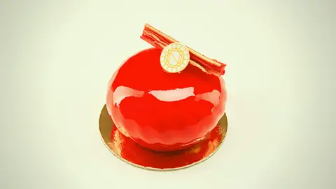 Meggyformákba zárt étcsokoládé mousse közepén egy fűszeres meggyragu helyezkedik el. Alatta egy kakaóbab törettel gazdagított, csokoládéval bevont, meggyes, kakós piskóta fekszik.