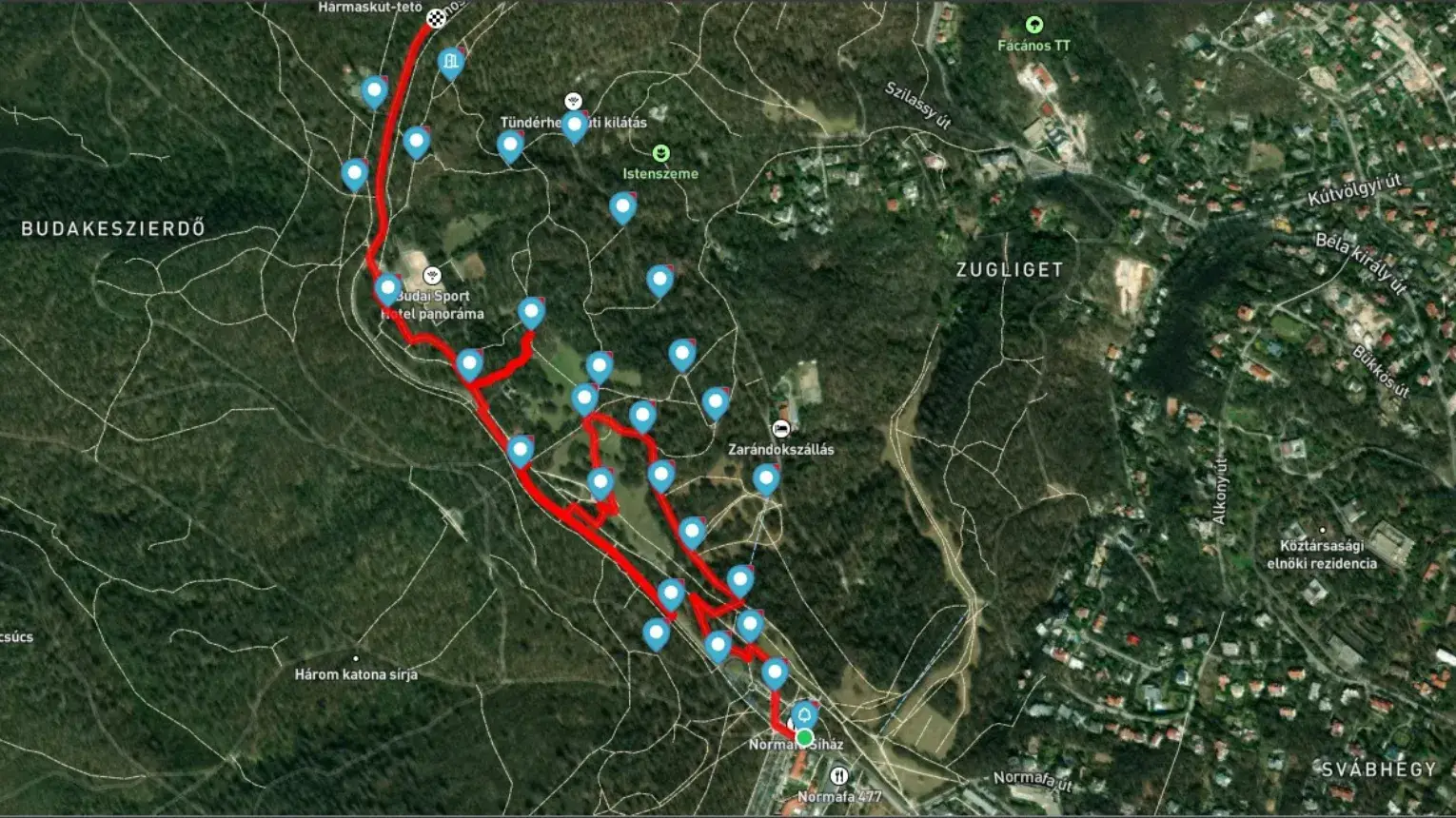Startpont: 47.502586, 18.966659 – Normafa