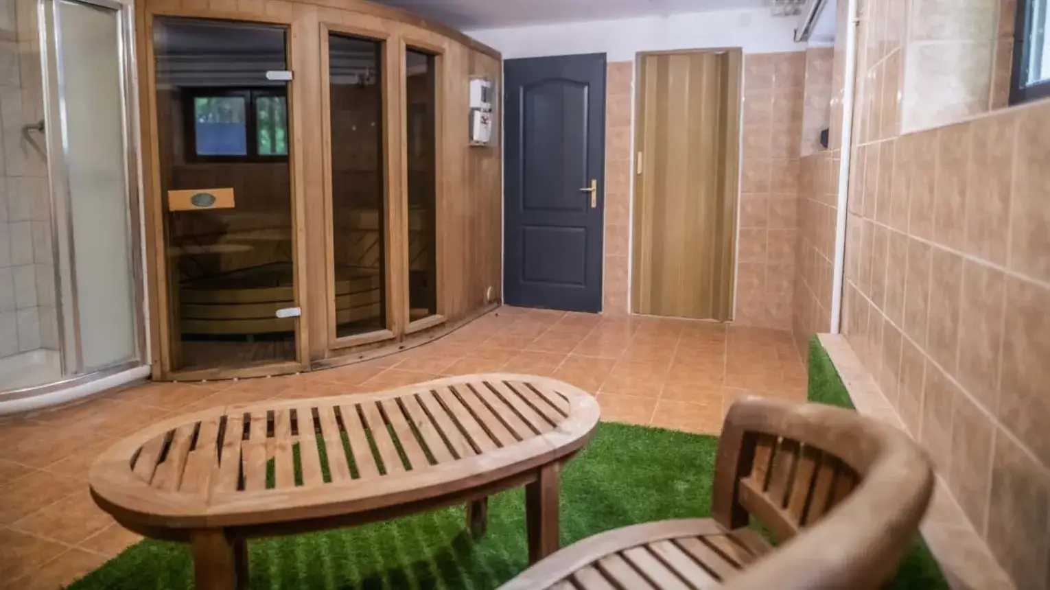 - Pihenők, piknik asztalok padokkal, az erdős udvaron