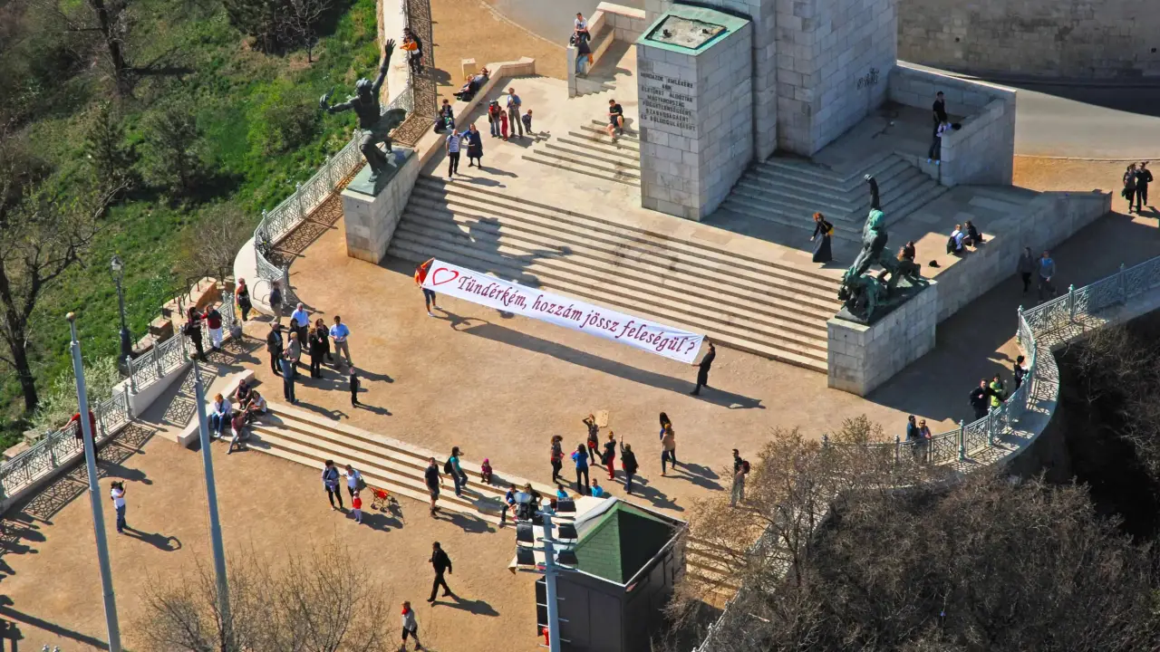 A ponyvát (molinót) a Gellért-hegy tetején a Citadellán húzzúk ki és az eseményt követően kipostázzuk a megadott címre, vagy a rokonoknak/barátoknak a helyszínen tadjuk.